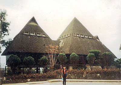 We also visited the adjacent outdoor museum with its full-scale model of a traditional Bontoc village including the ulog for maidens and a pit shelter for swine.  On my way out I met my former officemate (Manosa-Zialcita Architects) Jose Bayani “Banny” Hermanos who was also travelling with his wife Carol and two sons.  An avid traveler like me, he is also a professional photographer whose colored photos were featured in The Philippines: Action Asia Adventure Travel Guide.  After our museum visit, we proceeded to the nearby Pines Hotel & Kitchenette for a quick lunch. Then, we went back to the municipal plaza where we boarded the last Banaue-bound jeepney. Here, I befriended sisters Asia and Min-Min, one of which was traveling with her German boyfriend named Tom.  We left Bontoc by 1:30 PM.