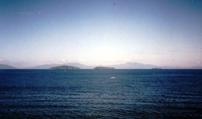 The next day, we were again off, to another excursion, this time to Puerto Galera itself. We again took a jeepney from the town proper and, once outside the city, the others, including me, again went up the jeepney’s luggage rack. However, we had to always be on the lookout for approaching trees, ducking to avoid being thrown off the roof. About 15 kms. out, we again passed the previously visited Tamaraw Falls. The road to Puerto Galera zigzags most of the way and the scenery – thick forests, mountains planted with rows of calamansi trees, deep ravines – made for a thrilling and scenic ride.